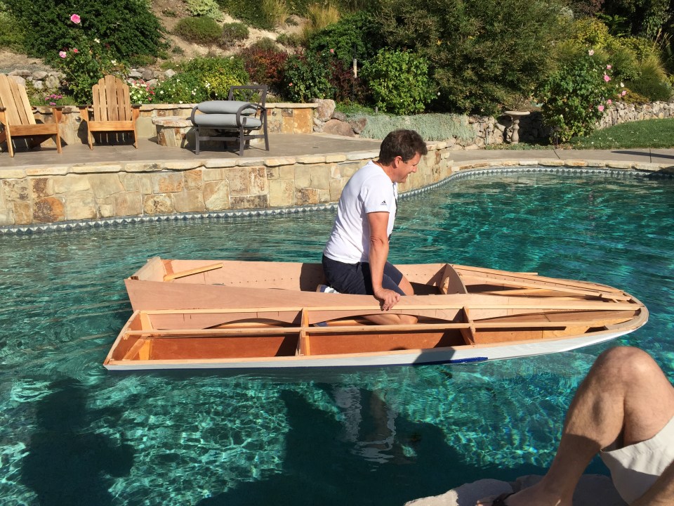 In the boat, with 100 pounds of weights in the back, simulating the motor