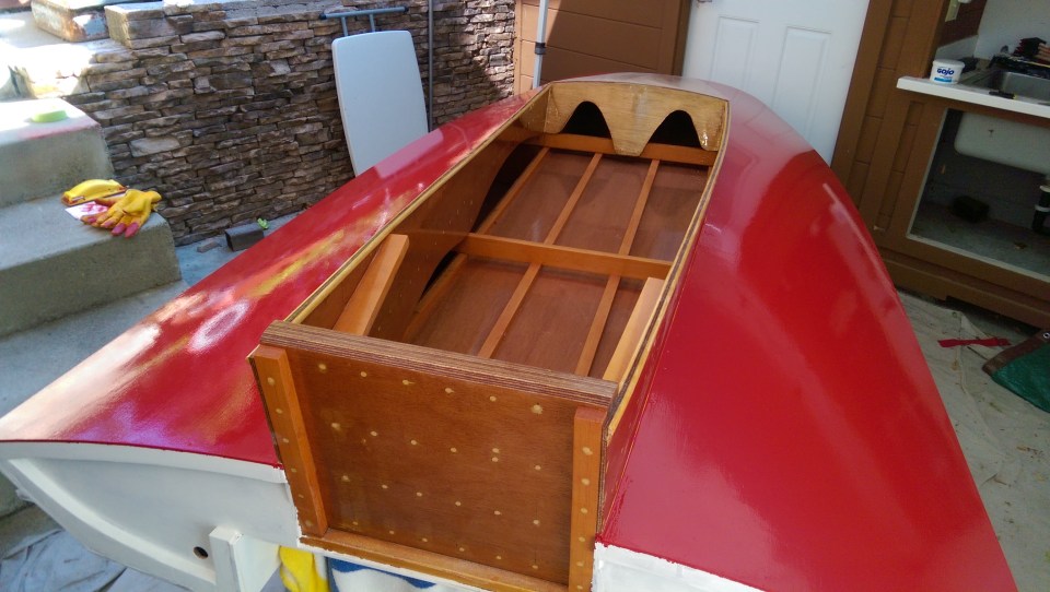 WP_20150625_003 ← Previous View from the rear. Transom will be white, with blue trim, and the motorboard will remain stained